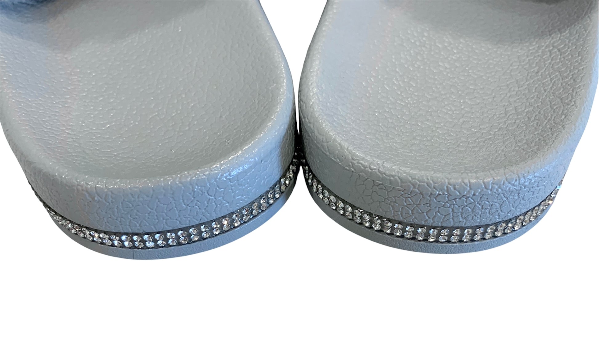 Gray Faux Fur Slides with Rhinestones - Open Toe Slip-On Comfy Slippers